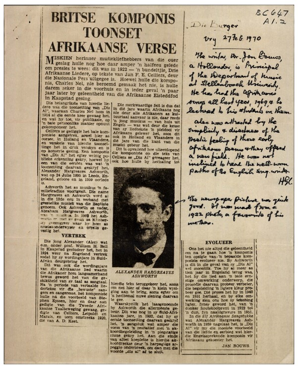 Op grond van sy kennis is Alec Ashworth in 1954 gevra om vir die vyfde uitgawe van Grove’s Dictionary of Music and Musicians ‘n bydrae te skryf.