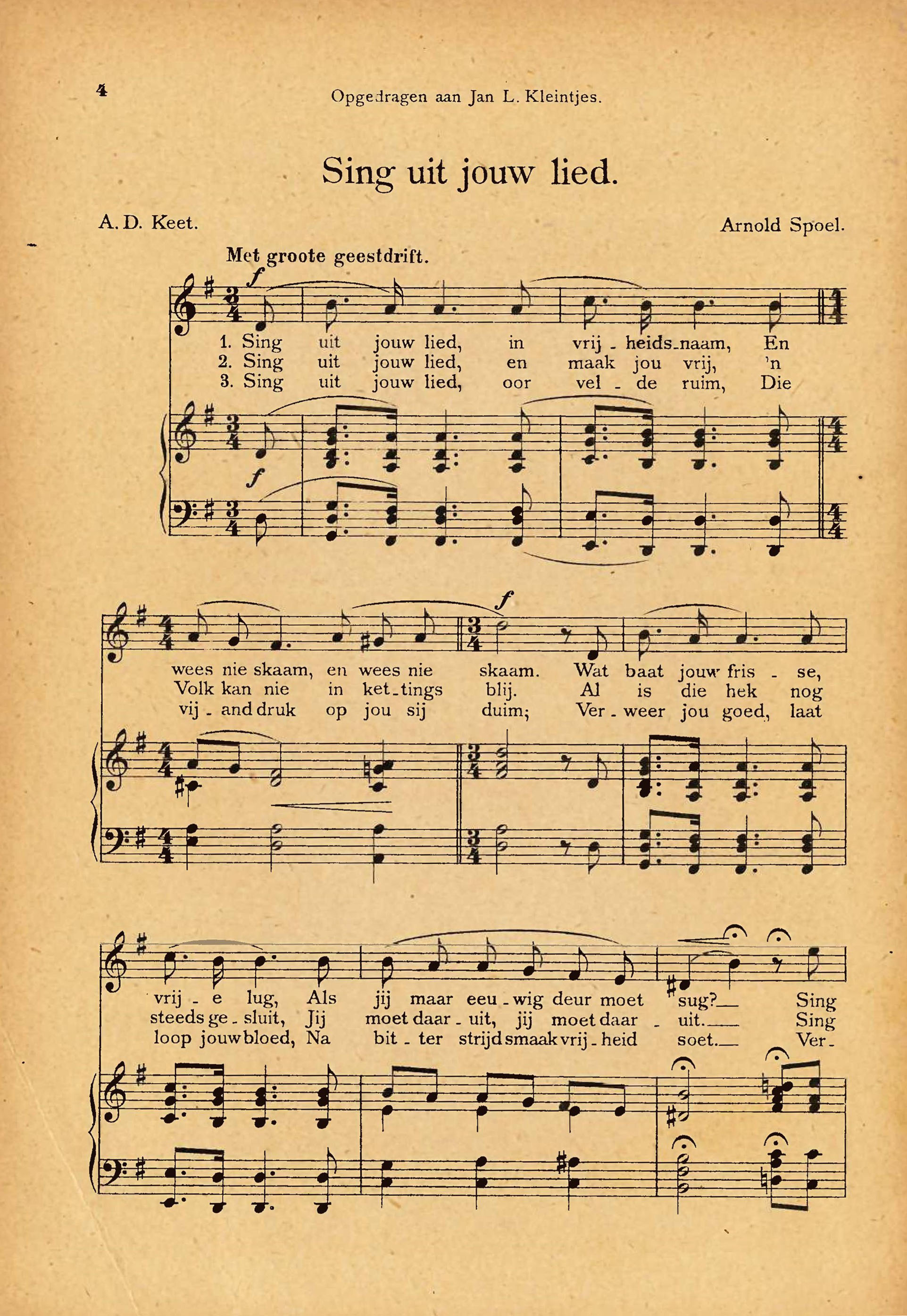 In twee van Spoel se liedere is sy verbintenis met Suid-Afrika duidelik hoorbaar. Vereenigd Afrika, Spoel se eie komposie wat in 1904 in Brussels opgeneem is, is in 1899 Aan de helden der Transvaal opgedra. Hierdie lied, saam met Keet se toonsetting van Sing uit jou lied, is aan President Paul Kruger geskenk met sy aankoms as banneling in Den Haag in 1901.