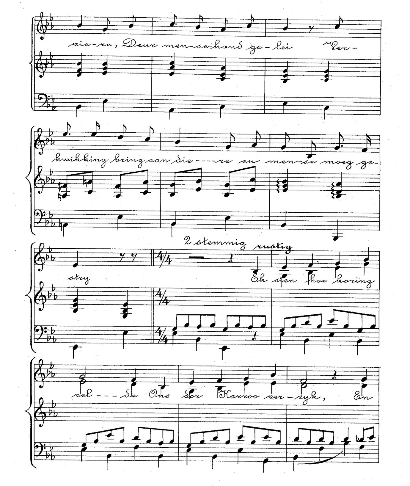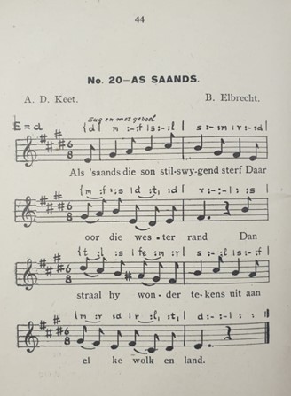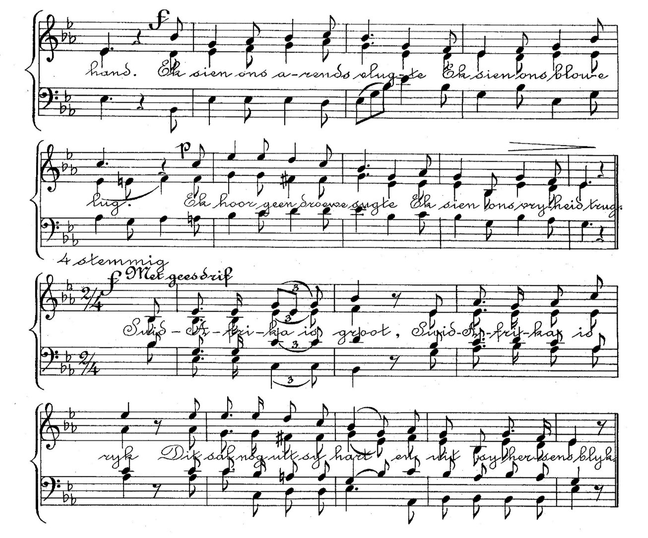 Soos gesien kan word op die gedrukte komposisies van Berend Elbrecht se toonsettings van Keet se gedigte, verskyn die naam van Hendrik Visscher (26/11/1865, Roermond, Hardewijk – 14/3/1928 Rustenburg, Suid-Afrika). Hendrik Visscher was ‘n onderwyser op Abcoude in Nederland toe die Nederlandsche-Zuid Afrikaansche Vereniging (NZAV) hom na die Transvaal gestuur het. Hy was een van Paul Kruger se Hollandse Onderwysers. As koorleier, komponis en versamelaar van liederewysies het Visscher baanbrekerswerk verrig. Hy het hom veral vir Christelike onderwys beywer. In 1893 het hy ’n musiekvereniging gestig en ’n blaas- en strykorkes gedirigeer, saam met musiekonderrig aan die spelers. Hy kon volgens oorlewering klavier, harmonium, tjello, viool, fluit, klarinet en hobo met groot vaardigheid speel. Visscher het baie in die Voortrekkers se liederewysies belanggestel en het tydens sy besoeke as inspekteur by plaasskole in die distrik wysies van die volks- en kerkliedere in gebruik opgeteken en versamel. Soos met Elbrecht, het hy ook saam met CG de Jonge (1865-1899) gewerk. Die eerste notering van liederwijzen is, sover bekend, in 1896 deur Hendrik Visscher gedoen.