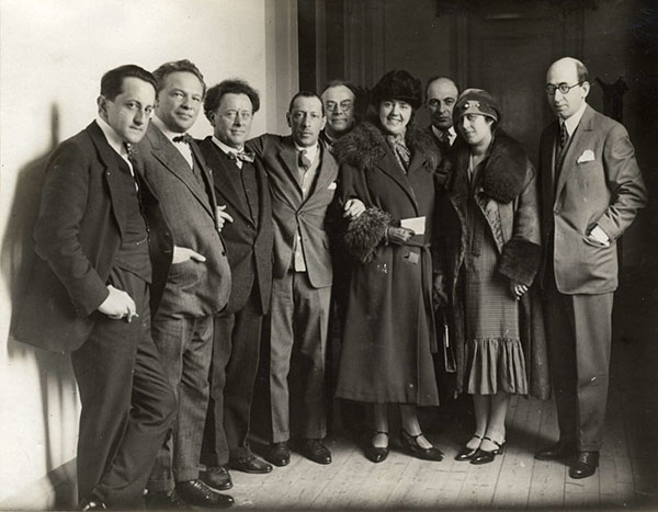 Van links na regs: Rudolf Mengelberg (1892 – 1959), Ottorino Resphighi, Willem Mengelberg (1871 – 1951), Igor Stravinsky (1882 – 1971), Cornelis Dopper (1870 – 1939), Mathilde Mengelberg-Wubbe (1875 – 1943), Sam Bottenheim, mev Lourié, Arthur Lourié.