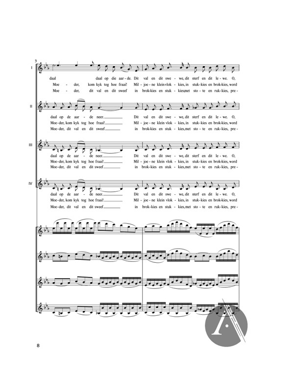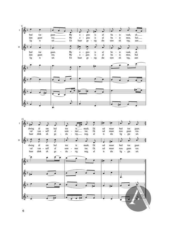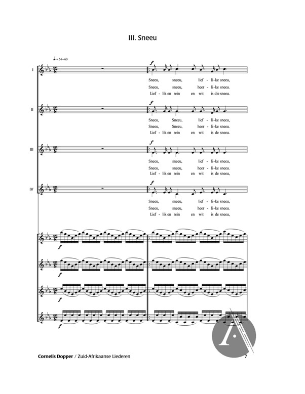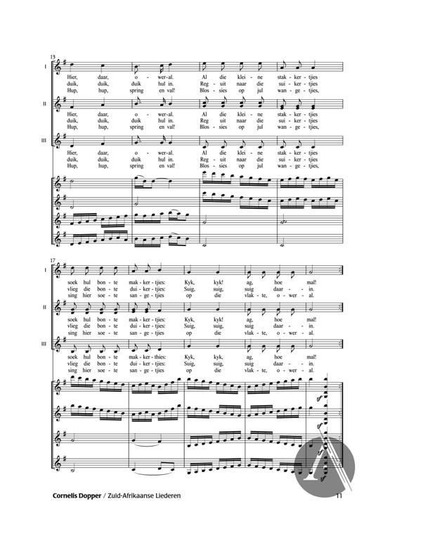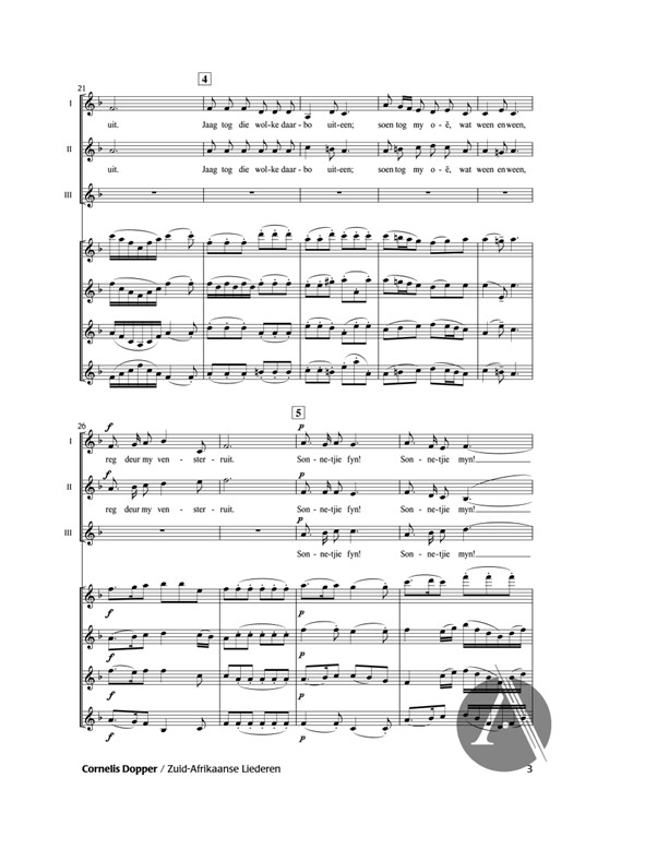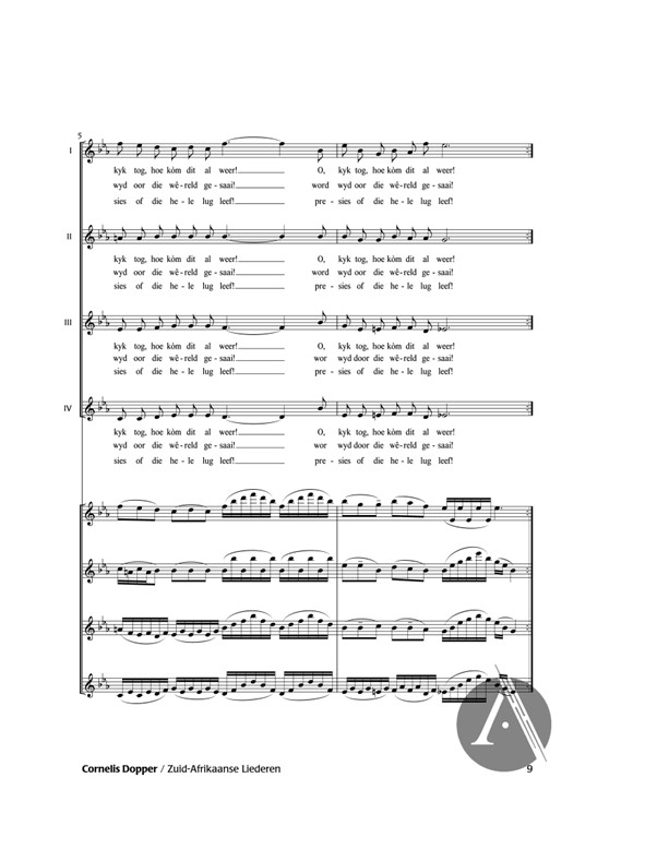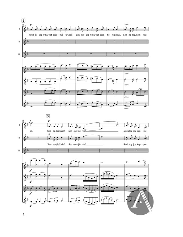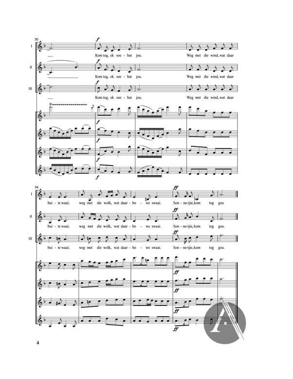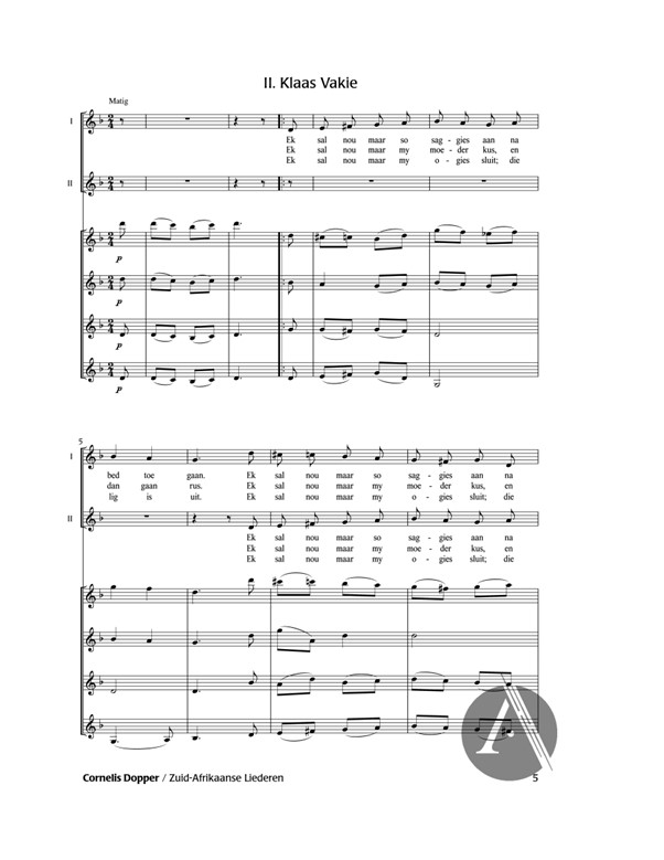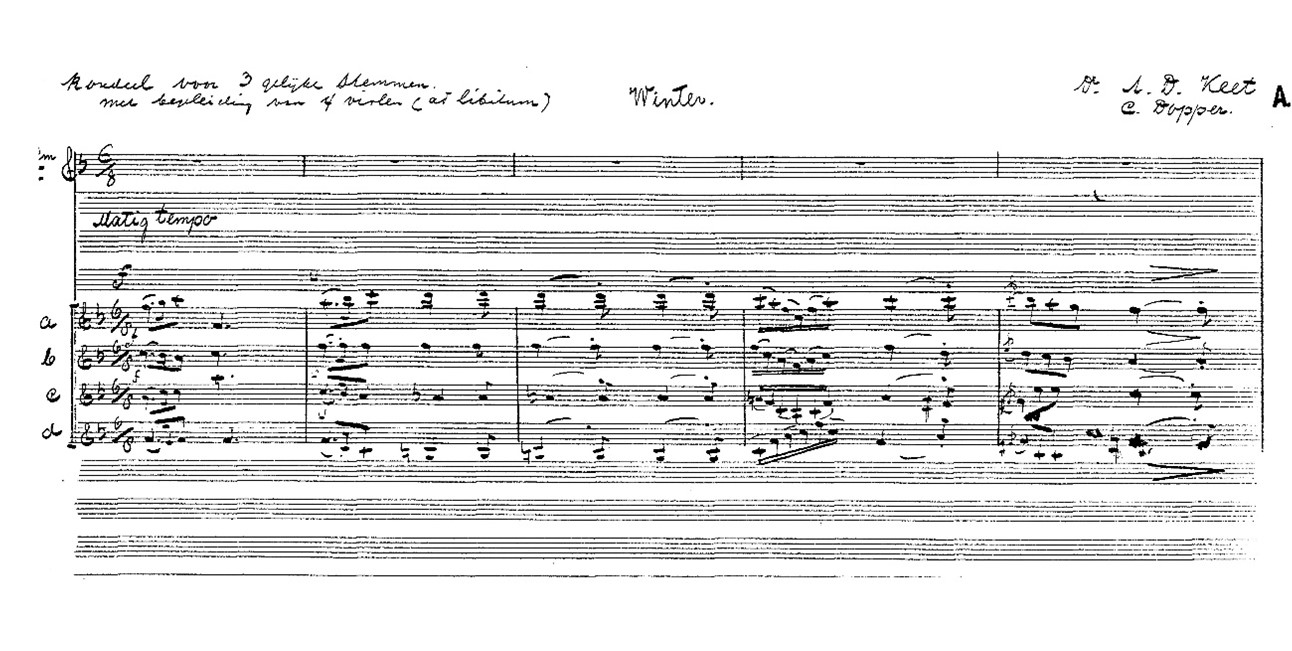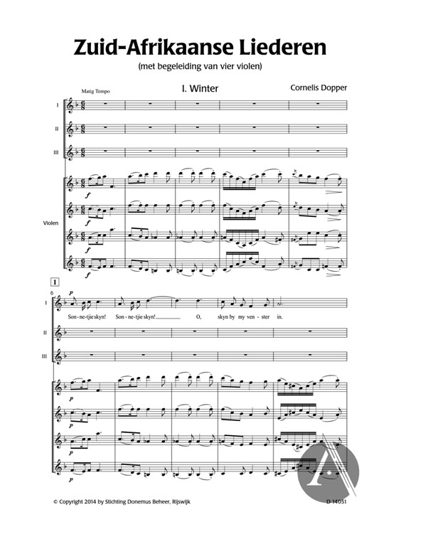 Al die handgeskrewe partituur is ontvang van Joop Stam van die De Stichting Cornelis Dopper uit Nederland, maar die gedrukte kopie is meer leesbaar. Hier volg ‘n voorbeeld van die handgeskrewe dokumente:
