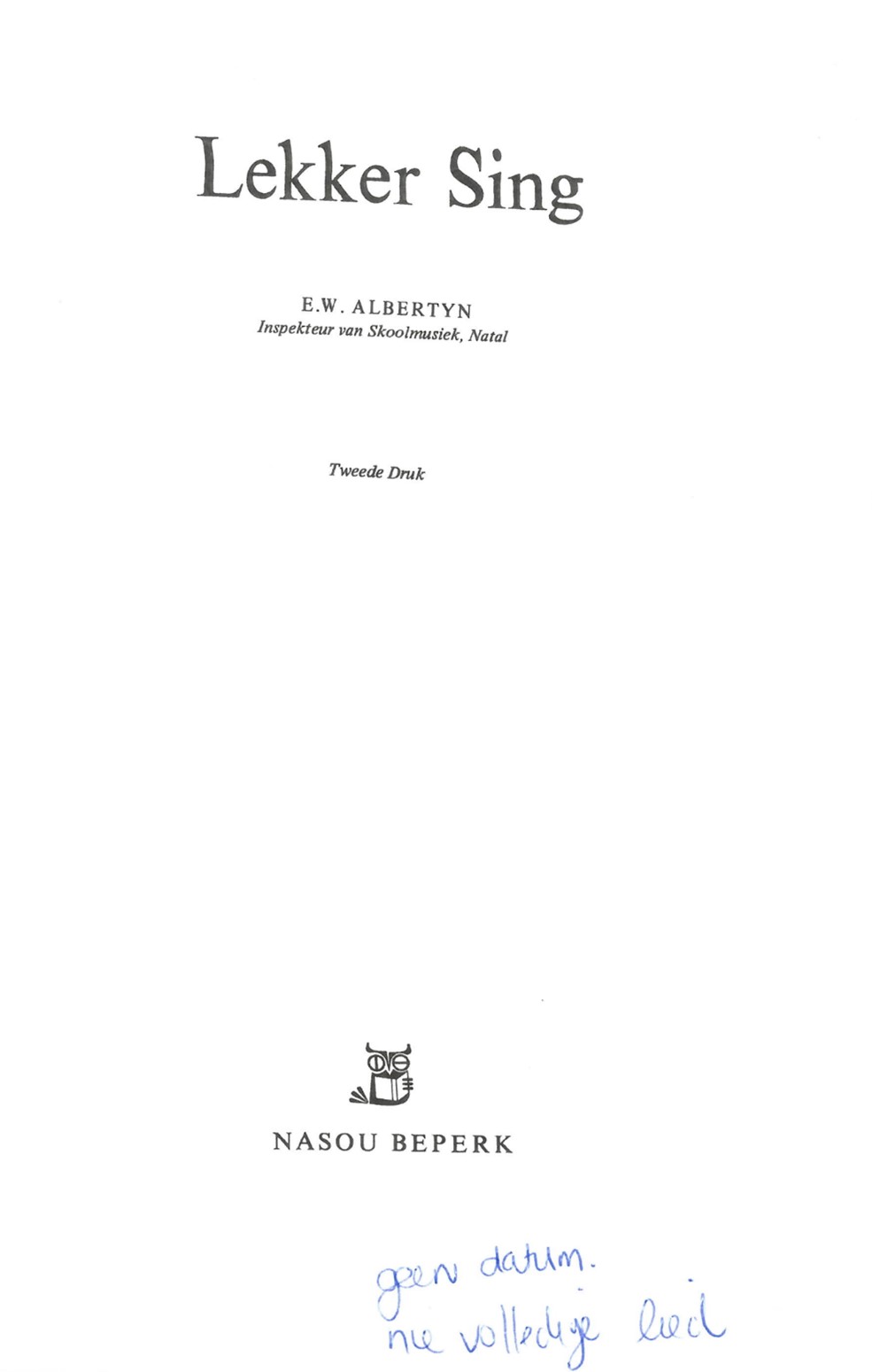 Maar een Suid-Afrika gepubliseer in “Lekker Sing”, Pretoria, 1972