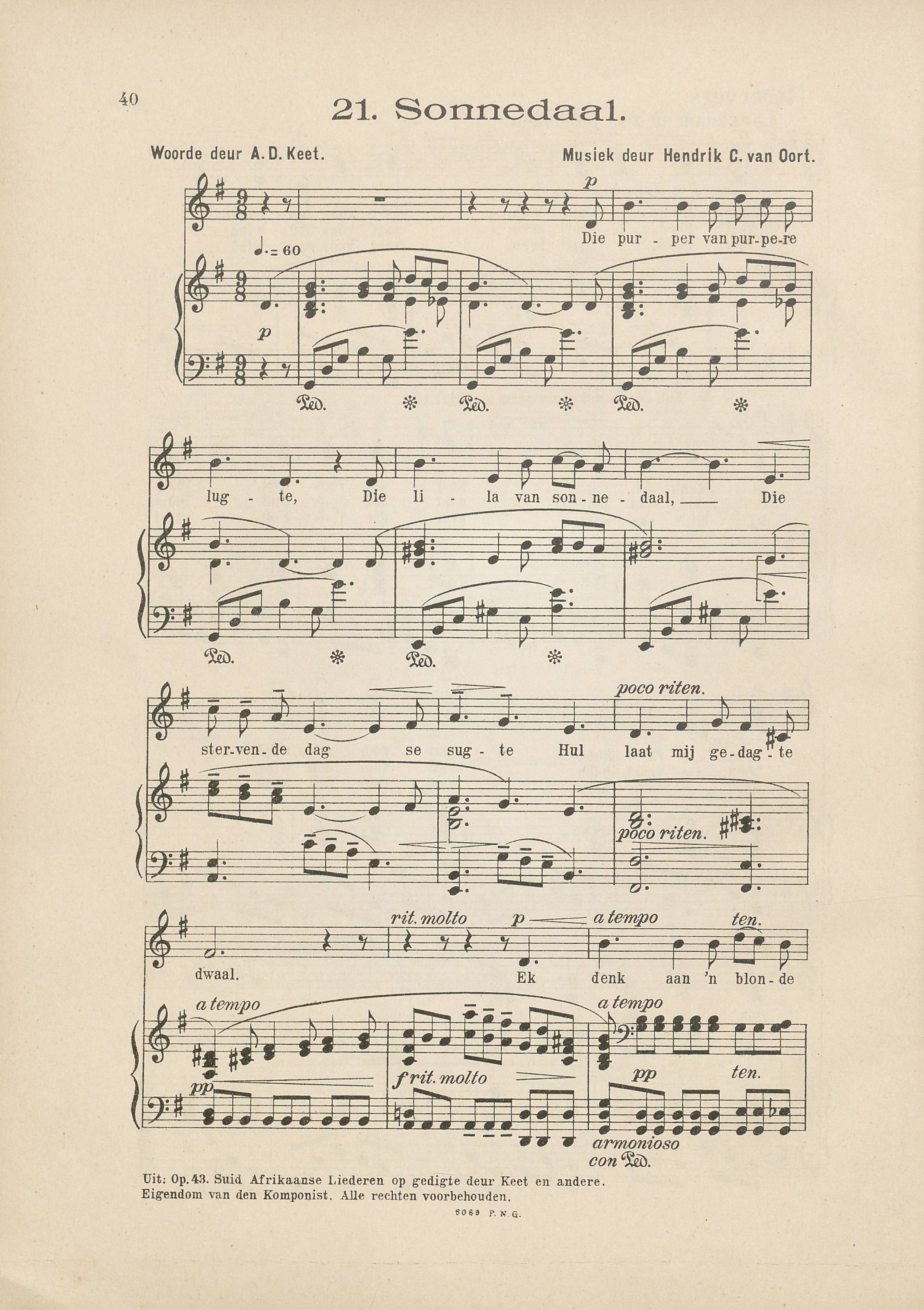 Op Dinsdag 24 Augustus 1926 verskyn ‘n koerantberig in die Bijvoegsel van Radio-Expres dat Sonnedaal – gedig deur Keet en getoonset deur Van Oort - in ‘n program van Radio Hilversum uitgesaai sou word. Ander liedere op daardie program was van Bach, Schubert, Heine, Gevers, Guido Gezelle en Kallenbach.