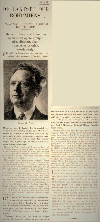 As operasanger maak hy sy debuut in 1899 in De dochter van madame Angot van C Lecocq, saam met die teatergeselskap Adee en Co. Hy het gesing in die Franse Opera in Den Haag en tree op in Parys en Londen in samewerking met E Caruso.