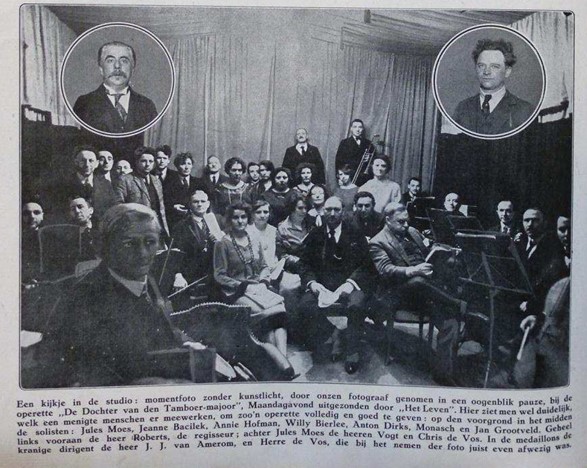 De dochter van den tamboer-majoor op 22 maart 1926 om 8.10 uur werd uitgezonden door de Hilversumsche Draadlooze Omroep, en uitgevoerd door diverse solisten en het versterkte orkest van de H.D.O. onder leiding van J.J. van Amerom. Aan deze producties werkte een keur aan artiesten mee die al naam hadden gemaakt of nog zouden maken in de Nederlandse operette- en operawereld. Willy Bierlee, Jules Moes, Herre de Vos en Jan Grootveld werkten aan iedere productie mee.”