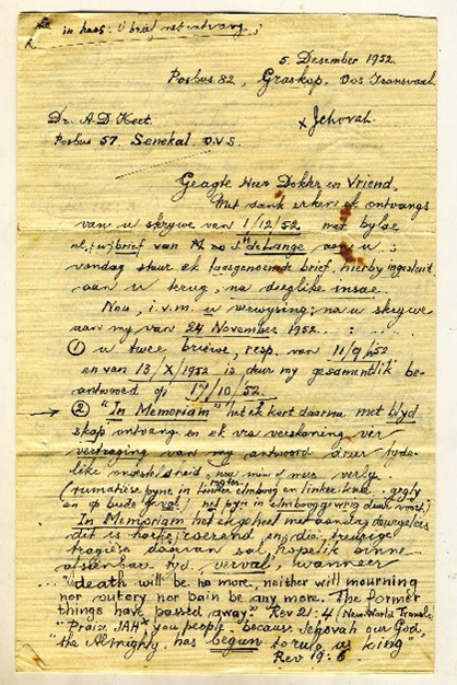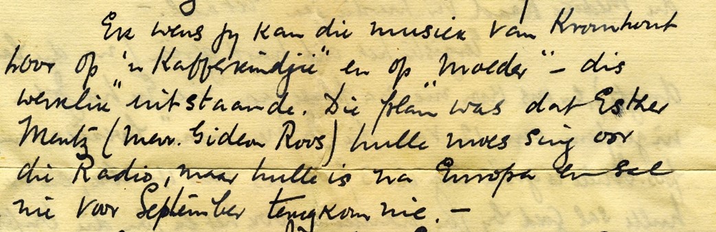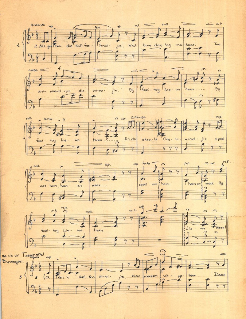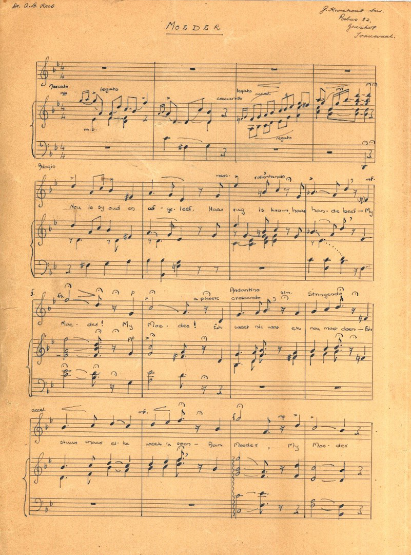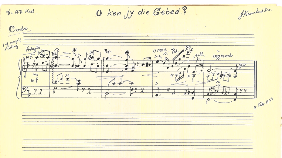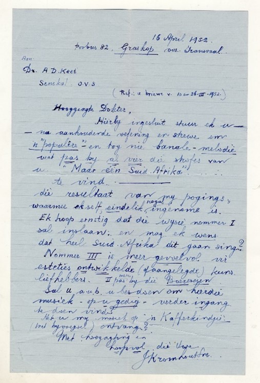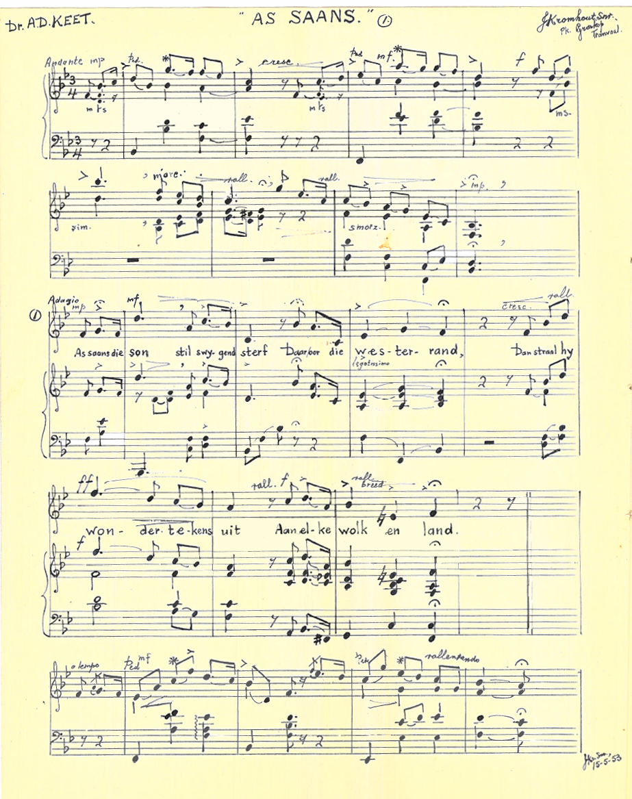 Kromhout en Keet het gereeld gekorrespondeer en Kromhout het die toonsettings wat hier gepubliseer is, aan Keet gepos en in die Keet Nalatenskap gevind. Ook die volgende toonsettings is daar gevind: HAL Hamelberg: Vrystaatse Volkslied, 26 Mei 1948; TJ Haarhoff: Die wens van Plato (1951); JRL van Bruggen: ‘n Simpel liedjie (1951); AG Visser: Geboorte van die Lente (1953), Princess Lointaine (Prinses van Verre) (1951) en ‘n Ruiterlied (Salut d’Amour) (1951); CL Leipoldt: Oktobermaand (1974); S.Ign. Mocke: Voorwaarts (1950) en 1951; W von Goethe: Schweizerlied (1953). Hierdie toonsettings is vir bewaring aan die Departement van Musiek, Universiteit Pretoria oorhandig.