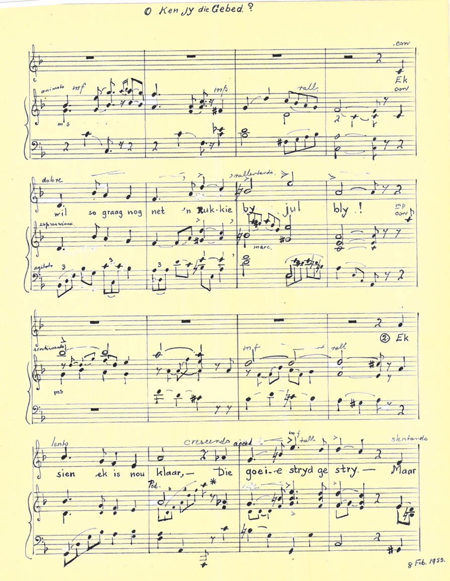 Toonsetting: O Ken Jy Die Gebed (2 verskillende toonsettings)