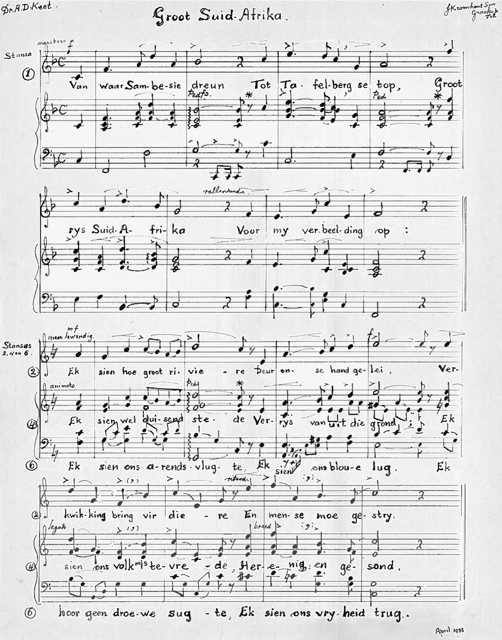 Toonsetting: Maar een Suid-Afrika (4 verskillende toonsettings)