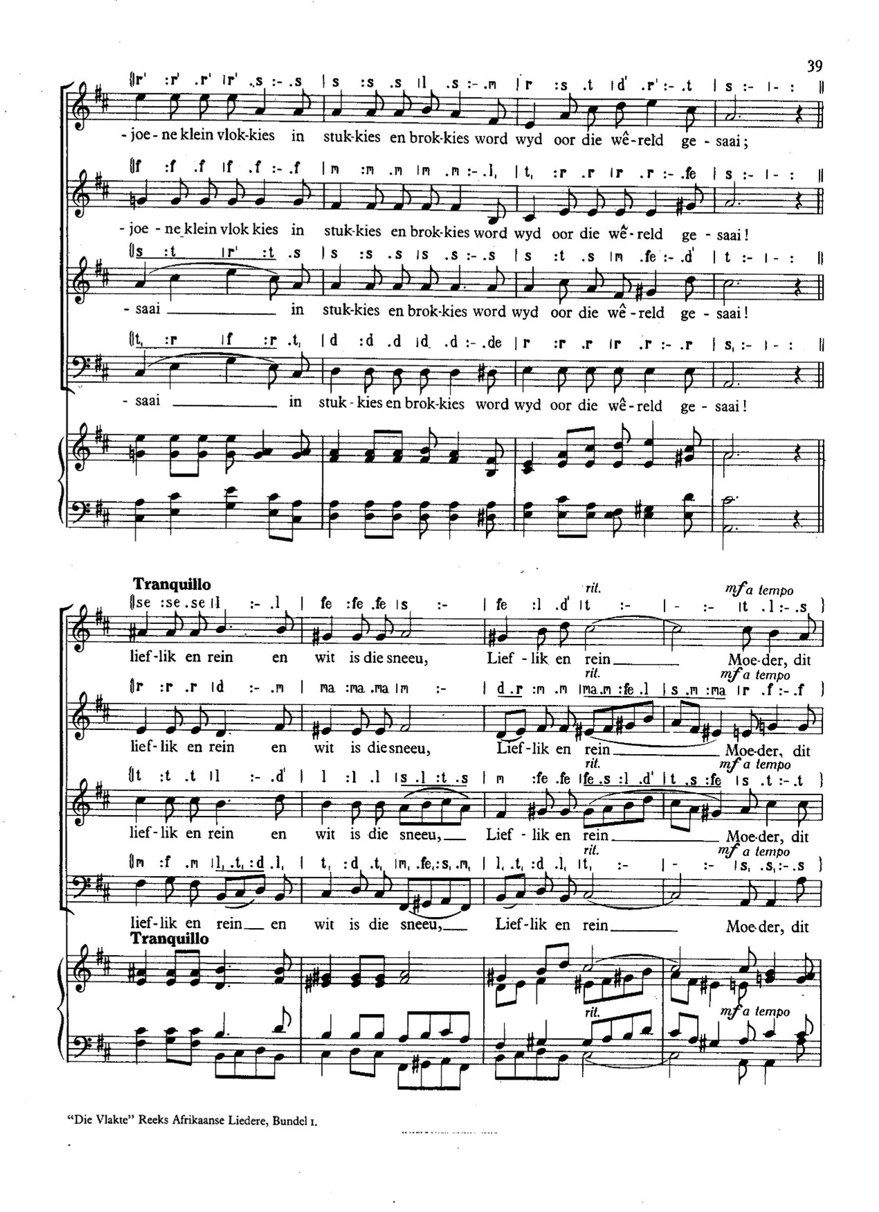 In 1967 is sy verwerking van Ps 428 tydens die Studentesangfees op Stellenbosch deur die Universiteitskoor gesing, en in in die daaropvolgende jaar was Sneeu op die program. Die Vrystaat se Jeugkoor het ook Sneeu in hul repertoire opgeneem.