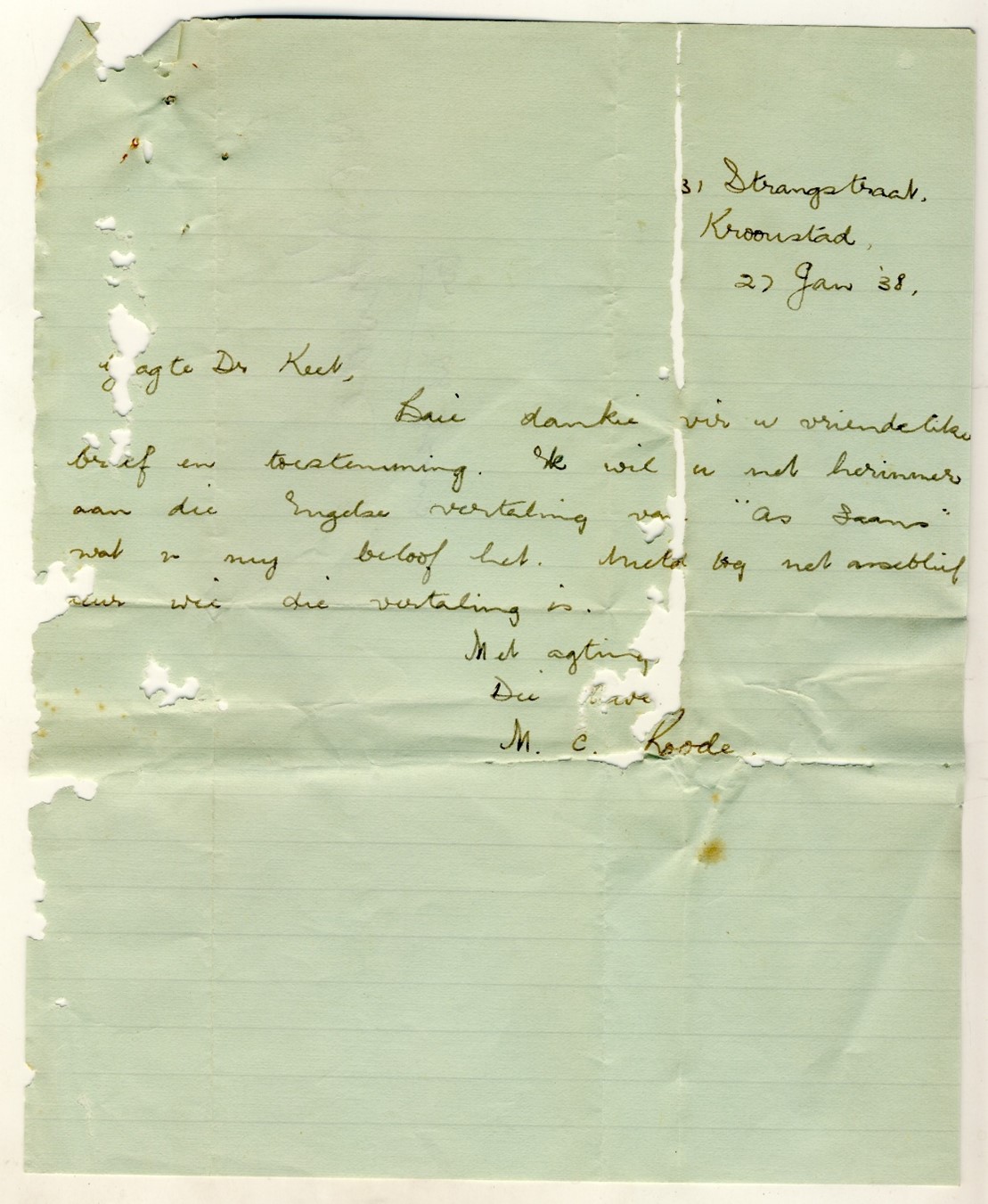 Uit Keet Nalatenskap die volgende briewe