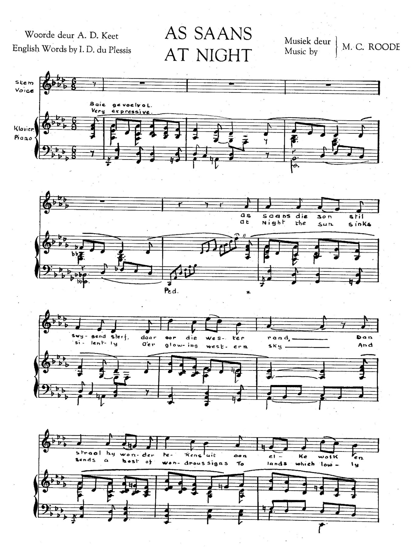 As Saans, vertaal deur ID du Plessis as At Night