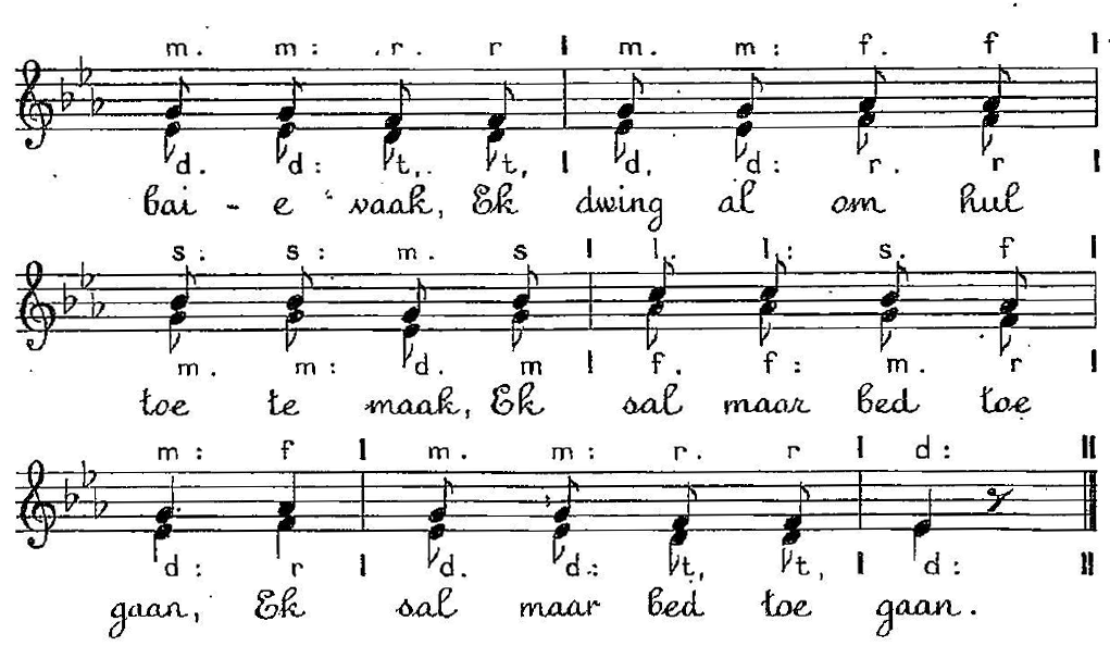 Oor musiek skryf Van Oostrum die volgende: “Op 'n ander gebied het ek met 'n poging tot verbetering baie minder sukses gehad. By die sangonderwys word op die Vasteland van Europa die Franse sg. Cheve-metode gebruik. Daarby word die tone wel do, re, mi, ens. genoem, maar deur syfers aangedui. Die skryfwyse van die tydmaat is so eenvoudig dat dit baie maklik vir sangdiktaat kan dien. Ek het die metode aanbeveel en in 'n reeks artikels in die “Kristelike Skoolblad" geskryf en byna 100 oefeninge vir die onderwyser se gebruik daarby gegee. Prof. (Gerrit) Bon, wat 'n leerplan vir sang opgestel het, gebruik liewers direk die balkskrif, alhoewel hy ook die syfternotasie as 'n aanloop daarheen baie beter vind as die tonic-solfa. My reeks artikels is nou in sy hande met die oog op moontlike oorneming in sy plan van sekere wysies wat ek met Afrikaanse woorde daarin opgeneem het.”