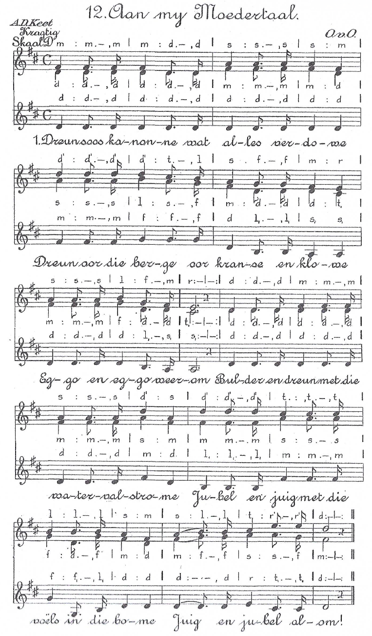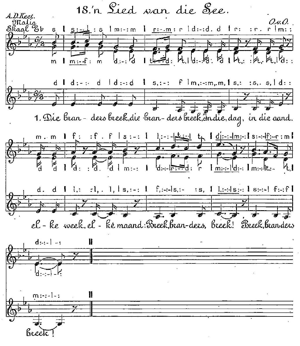 T Wassenaar, CLF Cilliers, TW Jandrell, Totius, CL Leipoldt, A Pannevis, H van der Westhuizen, D Krige, J Lub, W Boshoff, SJ du Toit, H Martins, JH Rademeyer, MSB Kritzinger, M Phillips, G Berend, JA van Oostrum, O Feuillet, ALG Bosboom-Toussaint, DJ Ackermann, SJ du Toit, JRL van Bruggen, Leipoldt, W Spiethoff, 7 verwerkings in opdrag van die SAUK.