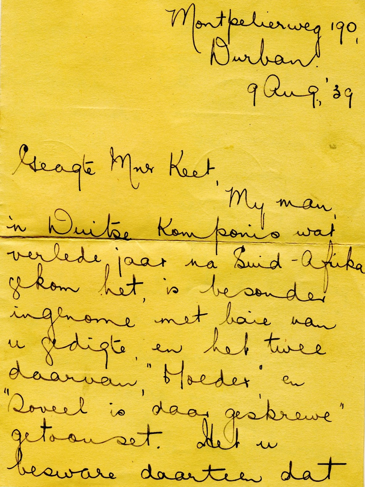 Na hul troue het mnr en mev Lewald twee kamers vol termiete in ‘n afgeleefde huis in Berea, Durban, hul intrek geneem. Daar was plek vir meubels en sy vleuelklavier, boeke en skilderye. Helen het by ‘n hoërskool klasgegee en in radiodramas by Broadcast House opgetree, in munisipale konserte gesing en liedervoordragte van Afrikaanse gedigte wat Albrecht getoonset het, opgevoer. Albrecht kon spoedig begin klasgee vir ‘n aantal studente wat via die munisipaliteit na hom verwys is.